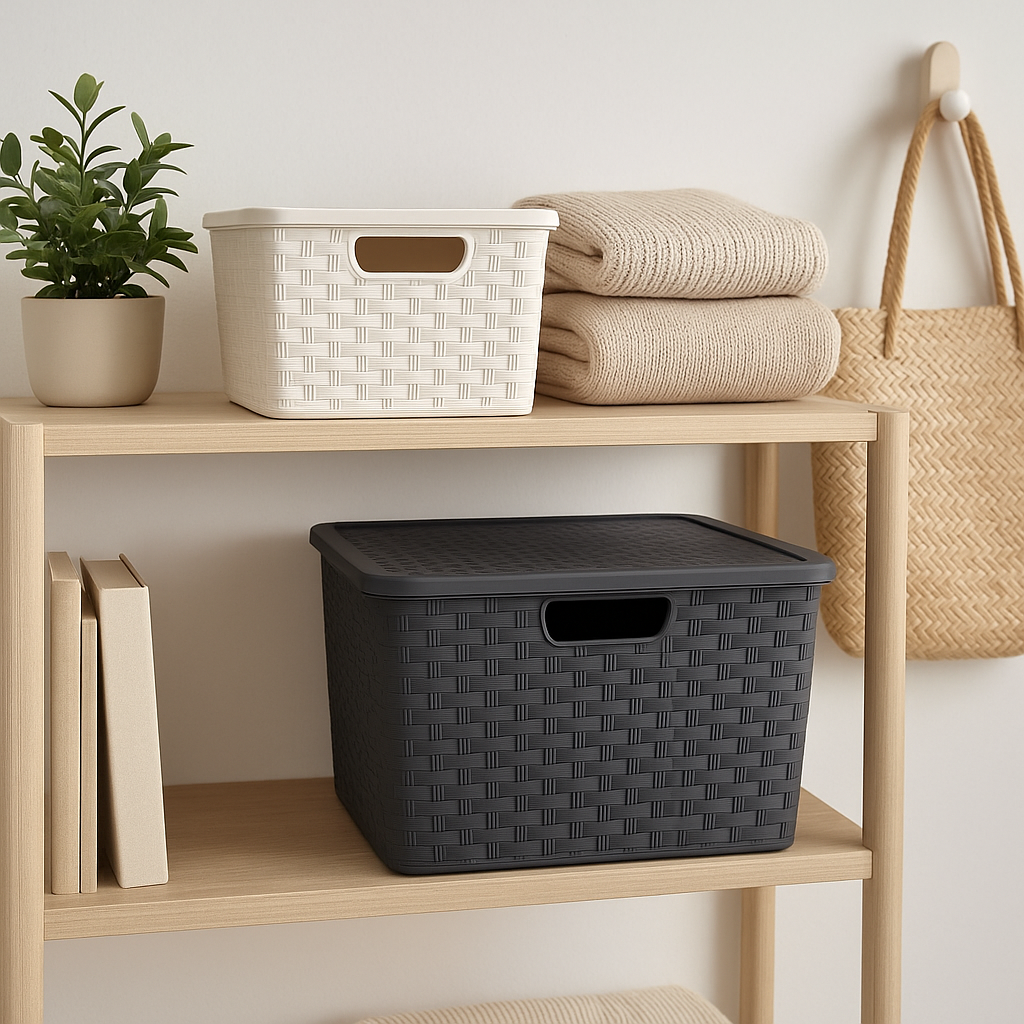 Ideal para guardar ropa, juguetes, productos de limpieza o lo que necesites tener a mano. Su diseño inspirado en el trenzado ratán combina estética natural y practicidad en un solo producto.